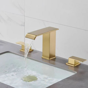 HONGDEC Messing Gold Becken Wasserhahn 3 Loch Doppel griff Wasserhahn Heiß Kaltwasser mischer Waschbecken Wasserhahn Badezimmer