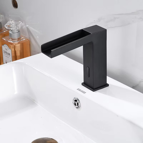 Matte màu đen tự động cảm biến phòng tắm bồn rửa vòi thiết kế hiện đại Hands-free Thác tap Lõi van gốm