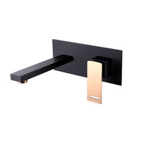 黒とローズゴールドの真鍮製モダンセラミックシングルハンドル洗面台ミキサー蛇口壁掛け